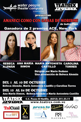 Tras siete años de éxito en los distintos escenarios de Caracas, Nueva York y Chicago, llega a la ciudad de Miami la producción de Water People Theater Company “Amanecí como con ganas de morirme”, protagonizada por las actrices Rebeca Alemán y Mónica Pasqualotto, acompañadas en esta oportunidad por la reconocida actriz Marisol Correa, quién hará una participación especial dentro de esta excelente Comedia.